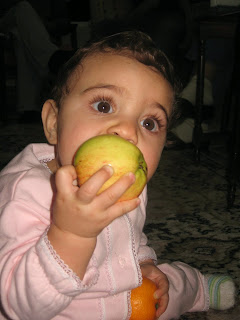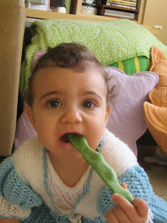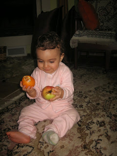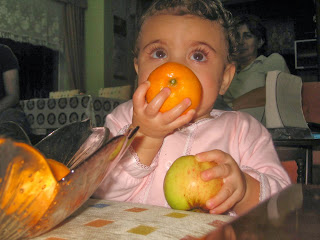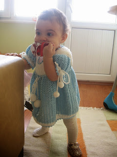 11. ayında Deniz bayramda büyüklerini ziyarete gitti. Yine taze fasülye kemirdi. Mandalina kabuklarının tadına baktı. Kahkahalarıyla herkesi güldürdü. Üstündeki mavi elbise ise annesinin :D