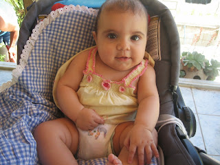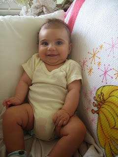 5. ayın sonunda 350gr alarak bizi şaşırttı tombik kızımız. Destekle oturmaya, bol bol gülücükler atmaya başladı bu ay. Bir de bol bol kedimiz ile bakışmaya :D