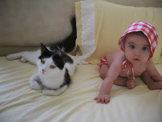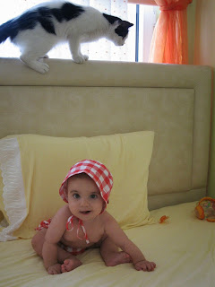 7.ayın sonunda Deniz 7 kilo 600gram oldu. Bu ay yatakta dönmeye başladı ve hergün durmadan emekleme çalıştı, başlangıca göre büyük bir gelişme gösterdi ama yerinde sayıklamaya devam ediyor. İlerde büyük bir aşçı olacağını da şimdiden bize göstermek istiyor sanki.