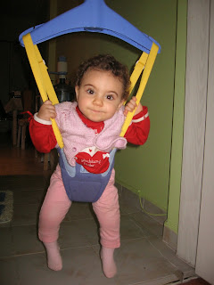 13. ayında Deniz fotoğraf makinasına poz vermeyi öğrendi. Daha önce hep fasülye kemiren kızım bu ay çubuk kraker ve spagetti ile tanıştı, yerken izlemek inanın son derece keyifliydi. Nezle olduğu için yağan karları pencereden izlemek zorunda kaldı. Mama sandalyesine ters de oturulabileceğini gösteren Deniz, dışarda kar yağarken evin içinde bol bol zıpladı.