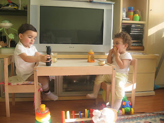 Oğul da çok yakın bir arkadaşımızın oğlu. 2 numaralı damat adayımız. Parkta beraber oynadıktan sonra evde oyuncak savaşı yaptılar. Ardından başbaşa yemek yediler :D